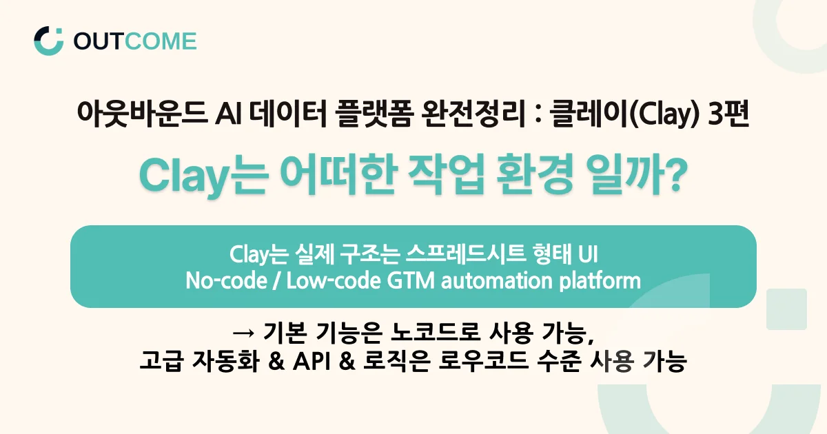 그리고 Clay는 No-code / Low-code GTM automation platform입니다.