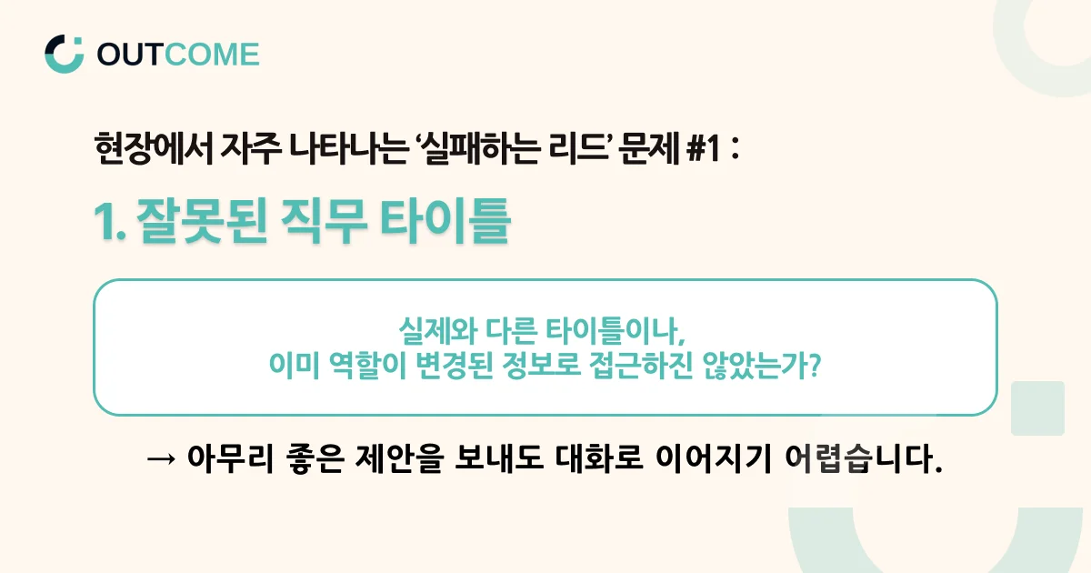 하지만 실제와 다른 타이틀이나, 이미 역할이 변경된 정보를 기반으로 접근하면 메시지는 처음부터 어긋납니다. 의사결정자가 아닌 사람에게 아무리 좋은 제안을 보내도 대화로 이어지기 어렵습니다.