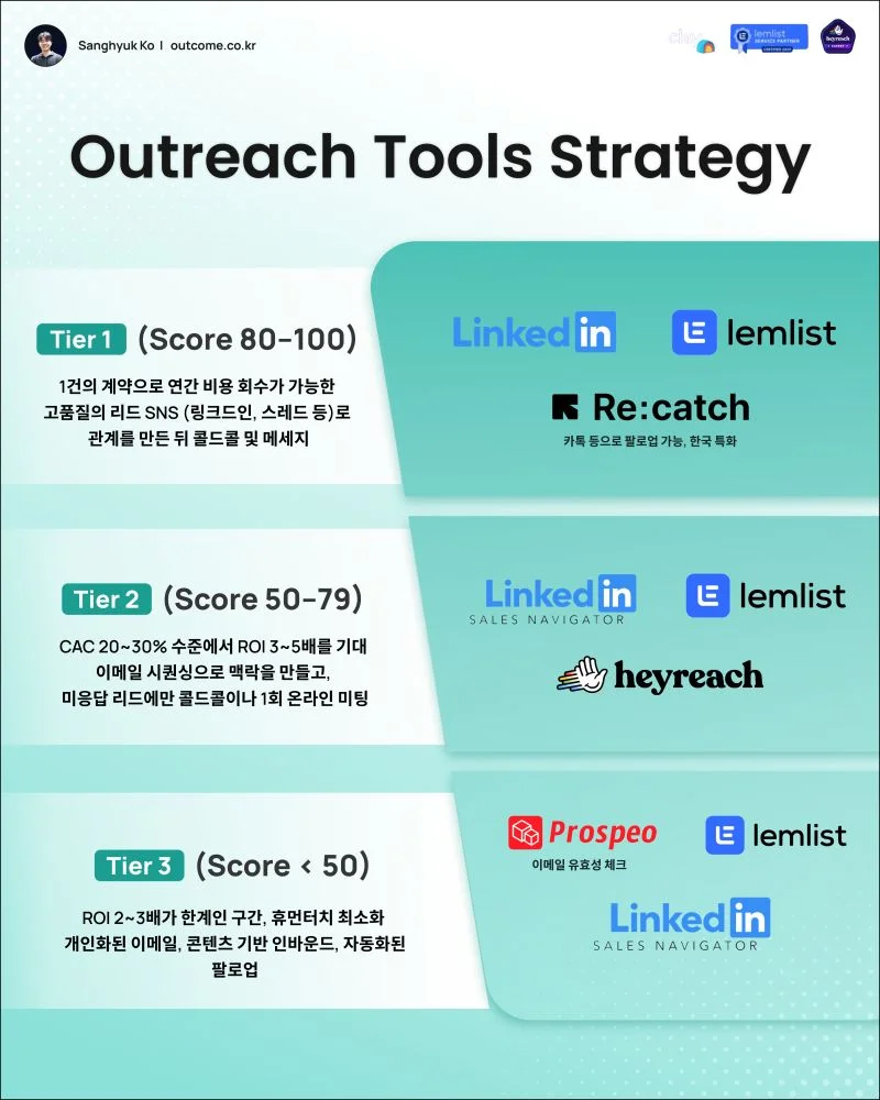 활용 도구로는 LinkedIn, lemlist, Re:catch 등을 활용해 후속 커뮤니케이션까지 밀도 있게 관리합니다.